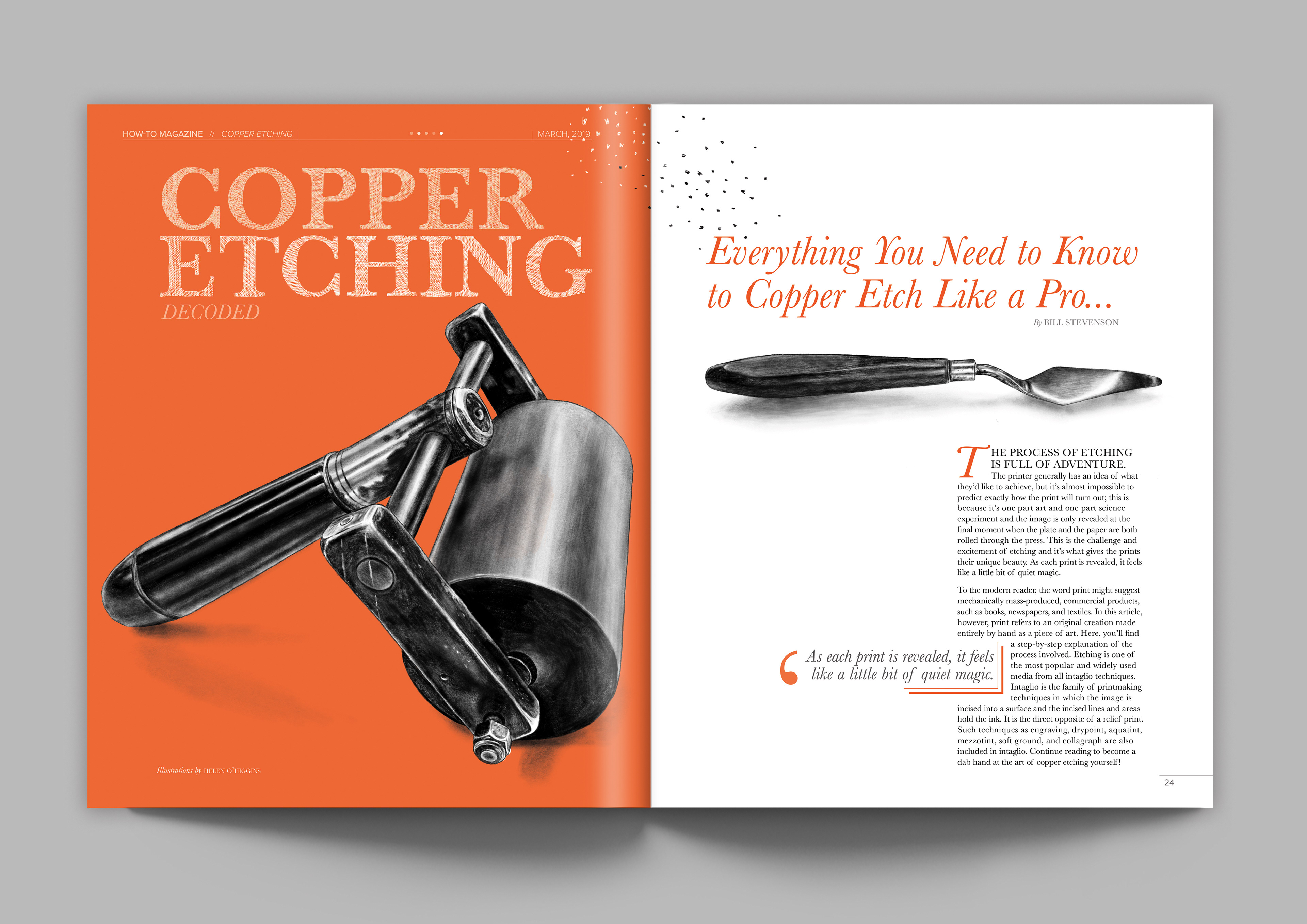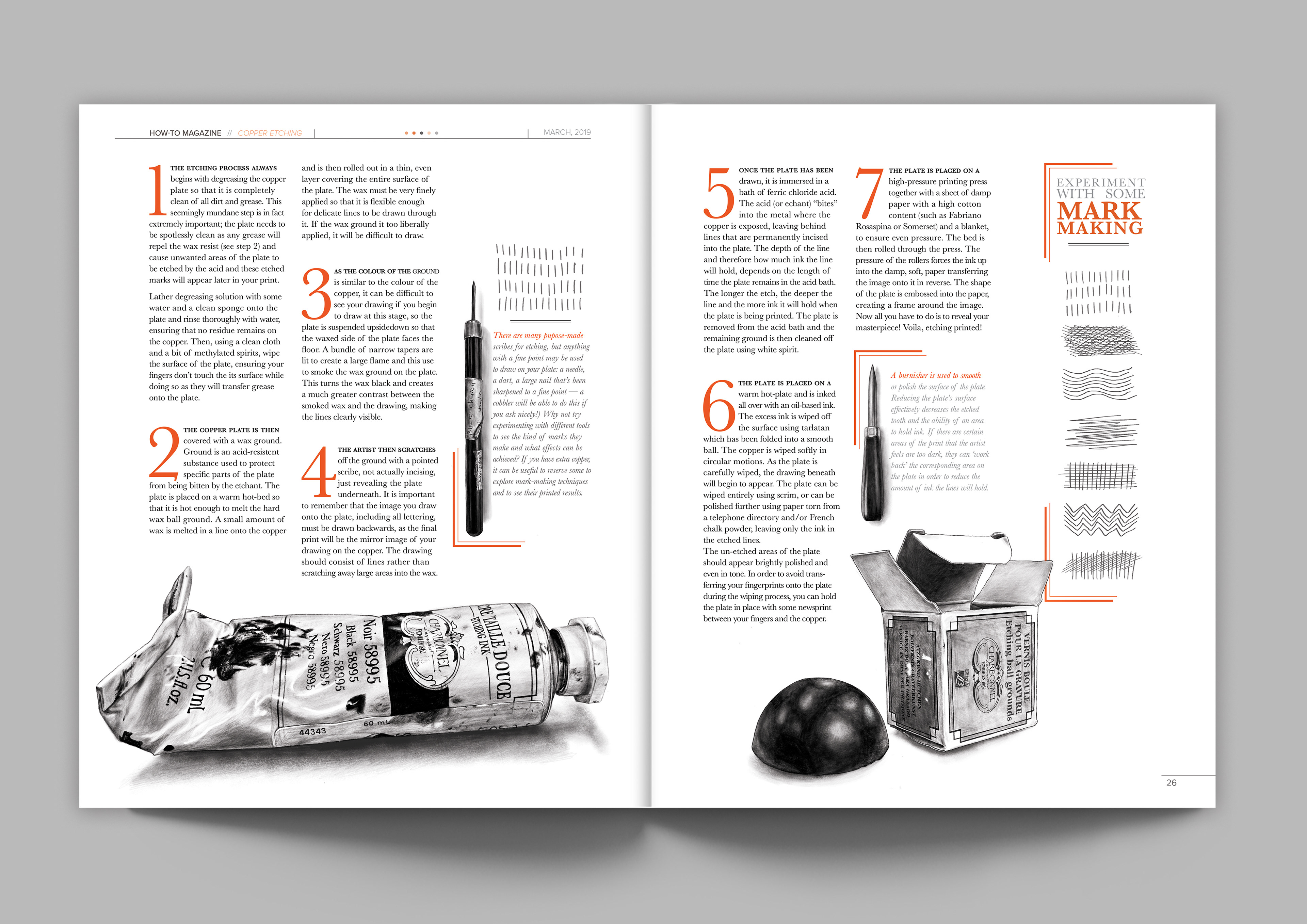 Two double page spreads I designed, which feature my hand-drawn illustrations.
