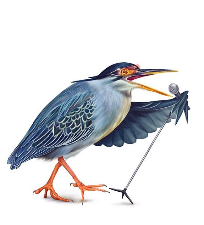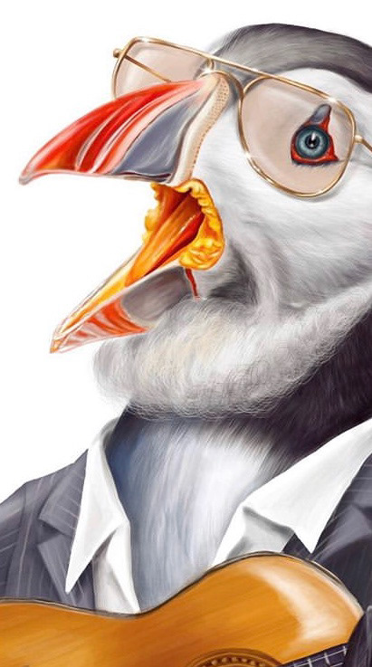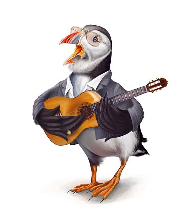 The Hard Rock Hotel commissioned me to paint two Irish music legends in bird form. I chose to paint Bono as a heron and Ronnie Drew as a puffin.